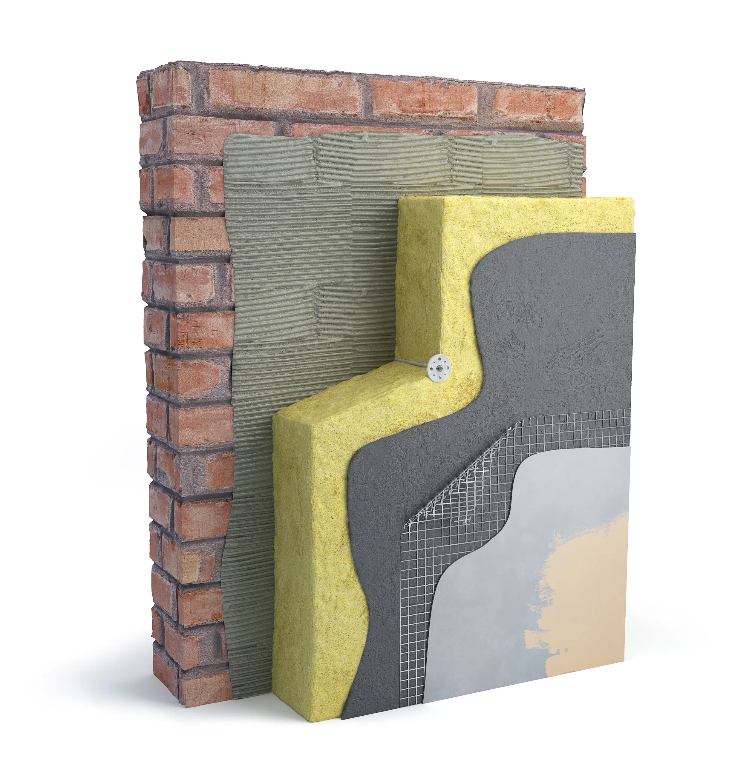 La pose des panneaux isolants se fait par calage-chevillage ou collage. Nous veillons à une jointure parfaite pour éviter toute fuite d’air. Ensuite, nous marouflons un treillis d’armature dans un sous-enduit. Cela renforce la solidité de la façade et évite les fissures futures.